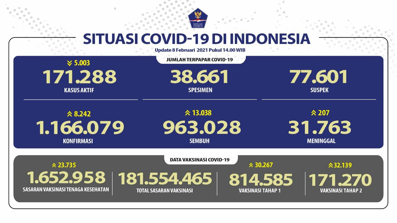8 Februari 2021 pukul 14 00 WIB Data Vaksinasi Covid 19 di Indonesia