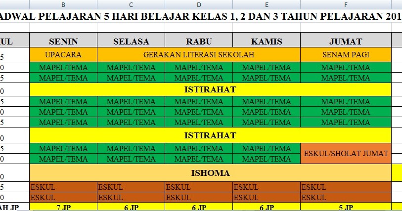 DOWNLOAD Contoh Jadwal Pelajaran 5 Hari di Sekolah RELAWAN HONORER